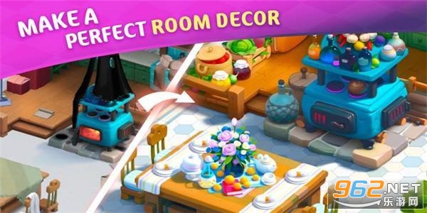 2、通过消除方块来获取能量,用能量去解锁更多的装修设备以及饰品。