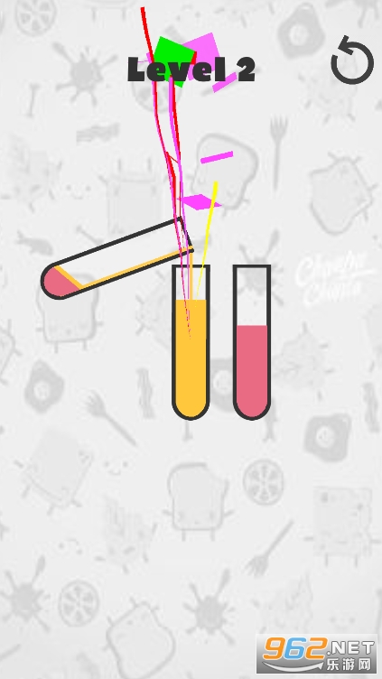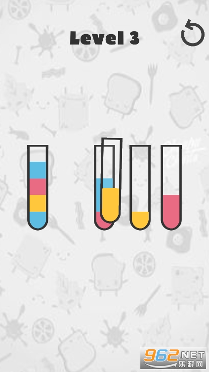 2、非常的简单,适用与所有人群,将颜色相同的沙子倒入试管中就可以过关;