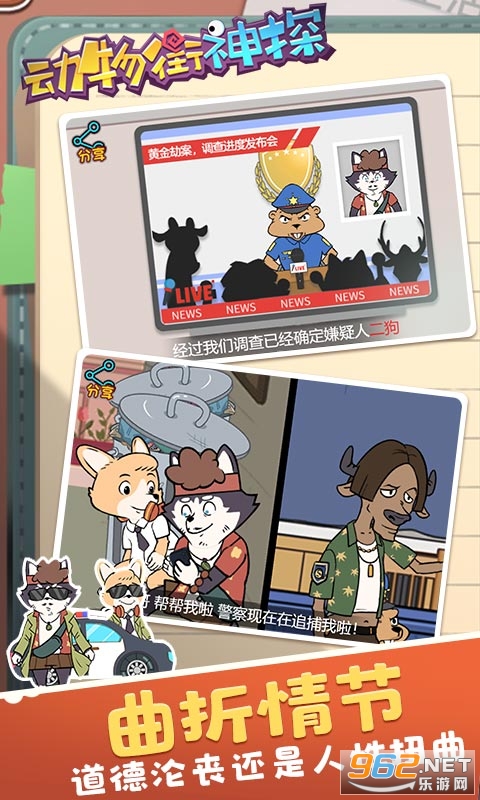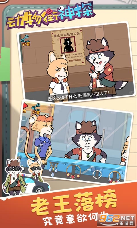 1、在这可爱的动物街道完成精彩的解密探索,侦查所有的案件;