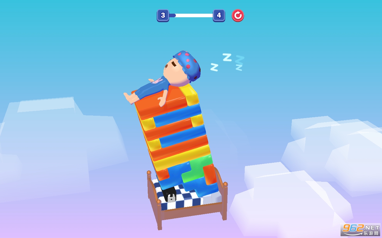 2、欢乐无比的游戏过程,沉浸在游戏世界,去自由挑战不同睡觉任务;