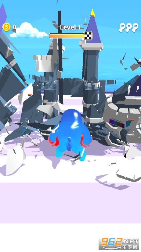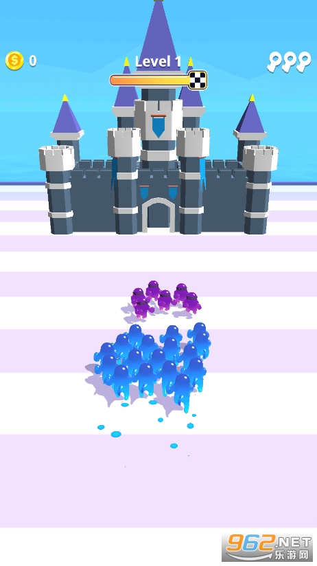 3、玩家控制的果冻能够经过搜集路上的小果冻来增加体积和分数。
