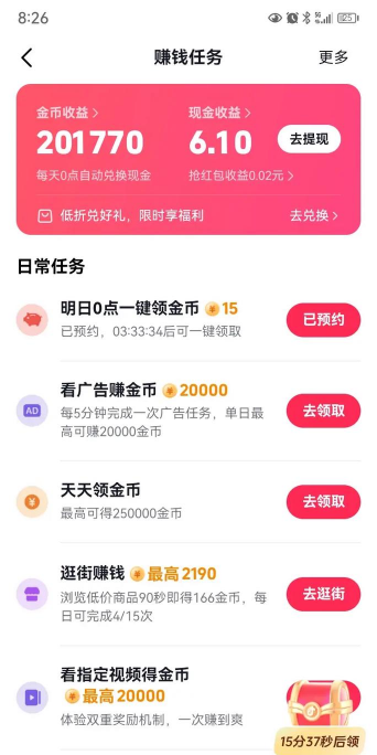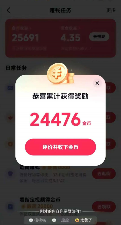 一款完美的短视频赚钱软件,海量的赚钱任务等你来完成,非常适合打发无聊的时间,感兴趣的老哥欢迎来体验试试吧!