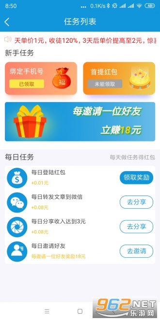 3、邀请好友最高享受18元的奖励,还能获得好友每次分享收益的一元提成
