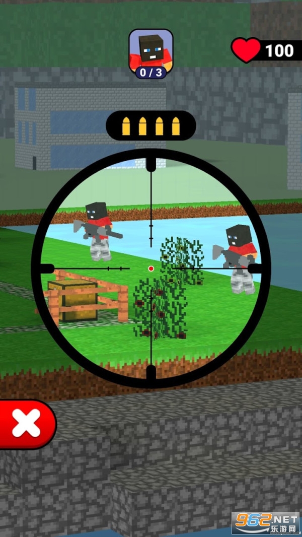 像素工艺风狙击射击,以方块人方块世界向玩家们展现,狙击射击时不要担心枪里面的子弹数量不够,尽情的去射击就完事了,子弹是无限的,但是大家要想更高效的完成挑战,最好还是提高一下自己射击的命中率。