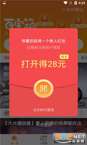 《百宝箱浏览器红包版》是一款能赚钱的浏览器软件,玩家可以在这里可以体验一边使用浏览器一边赚红包福利,奖励也不错赚钱也轻松,感兴趣的朋友还在等什么?来962下载吧!