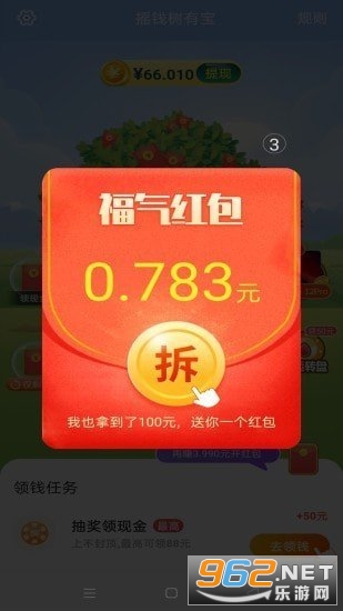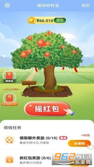 《摇钱树有宝红包版》是一款完美的种树赚钱平台,玩家通过种果树的方式来赚红包福利,奖励也不错,赚钱也方便,超多任务等你来完成,提现也方便,喜欢就来试试吧!