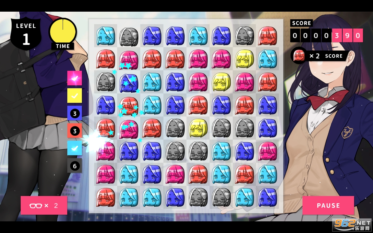 裤袜视界拼图课游戏有15个关卡, 全部消除完还会有特别演出,游戏玩法主要是三消