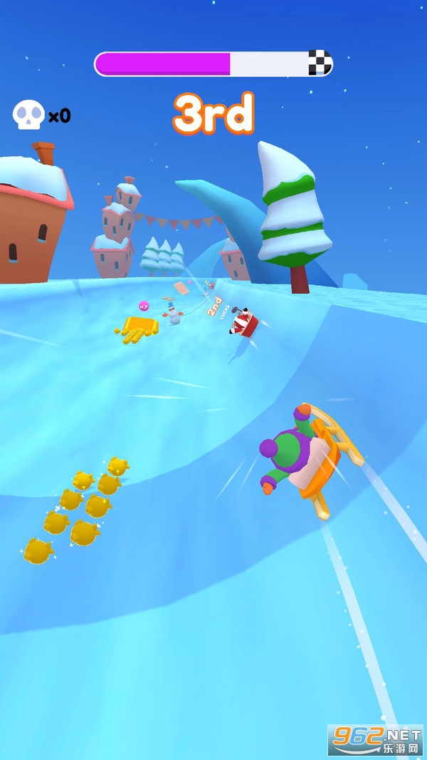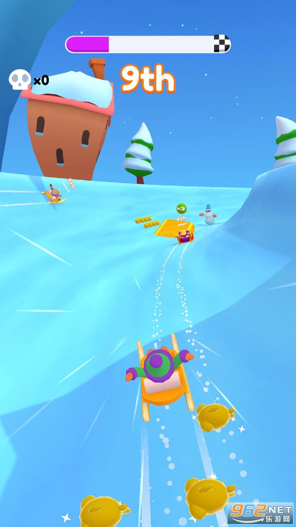 对玩家们的反应能力是极大的考验,需要我们在滑行的时候快速的做出反应,躲避障碍物,雪橇还有多种款式,可以使用金币去购买你喜欢的款式,每场比赛系统都会自动为我们匹配实力接近的对手,这样也能让你有更好的游戏体验。
