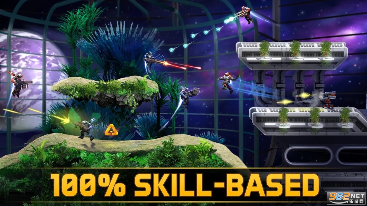 2、空中魂斗罗的玩法,玩家可以随意找到落脚点,陆战也精彩。
