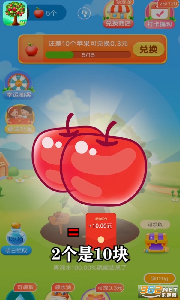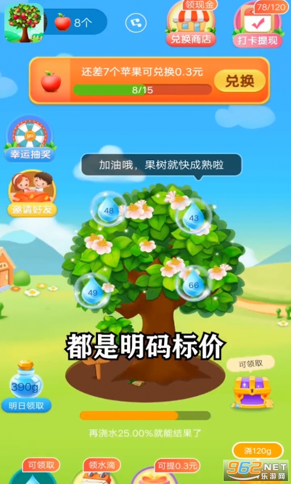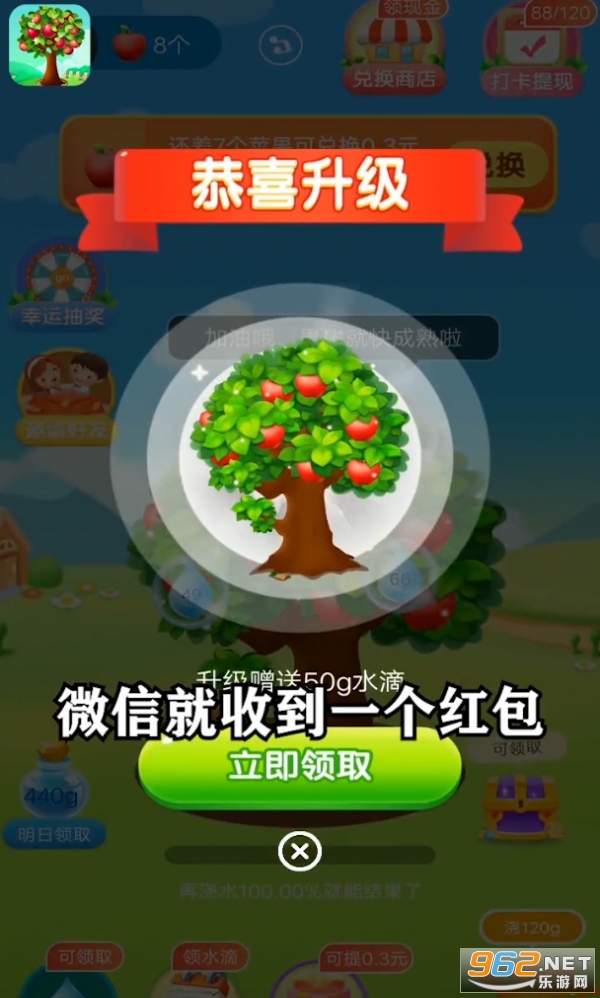 3、通过虚拟农场果树种植,也能够为你赚取到丰厚的奖励,用金币来兑换更多的红包福利。