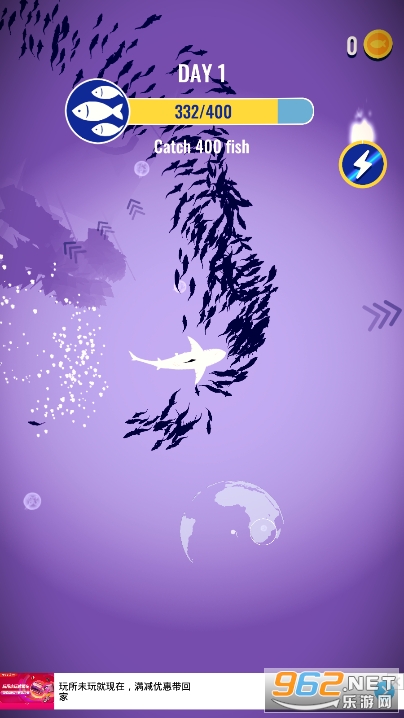 1、扮演一个无情的饥饿鲨鱼吧,在海洋中努力的吞噬小鱼才不被饿死;