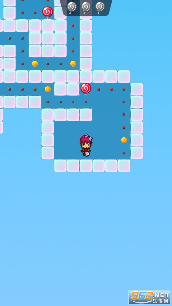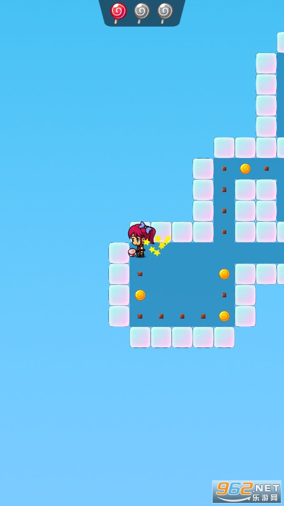 一款有趣的休闲闯关游戏,游戏中你将通过滑动屏幕来控制角色的冲刺方向,最终成功收集所有的糖果到达终点,游戏中你还可以购买保护盾来抵消一次伤害,游戏的玩法轻松有趣,推荐给喜欢休闲游戏的玩家。