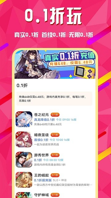 ·充值自动打折,充值只需折后价,全场3折起,从此手游无氪金