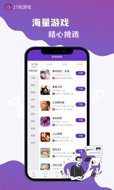 17玩游戏2026最新版是一款资源丰富的游戏盒子软件,在平台上面给玩家们提供了非常多的游戏资源来下载畅玩,而且游戏中游戏的分类十分详细,还有很多的折扣可以领取,福利也是非常的多,感兴趣的朋友们快来下载体验吧!