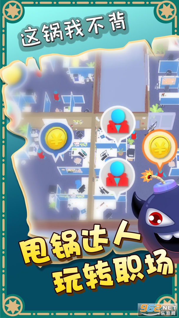 《这锅我不背》是一款恶搞当下职场现状的休闲解压游戏,玩家在游戏中扮演一名公司员工,通过不断摔锅同事、挖坑埋雷、戏耍老板、拉拢站队等骚操作,一步一步走上人生巅峰。