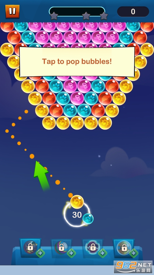 3、玩家需要通过不断的射击,消除所有的泡泡,获得更多的积分。