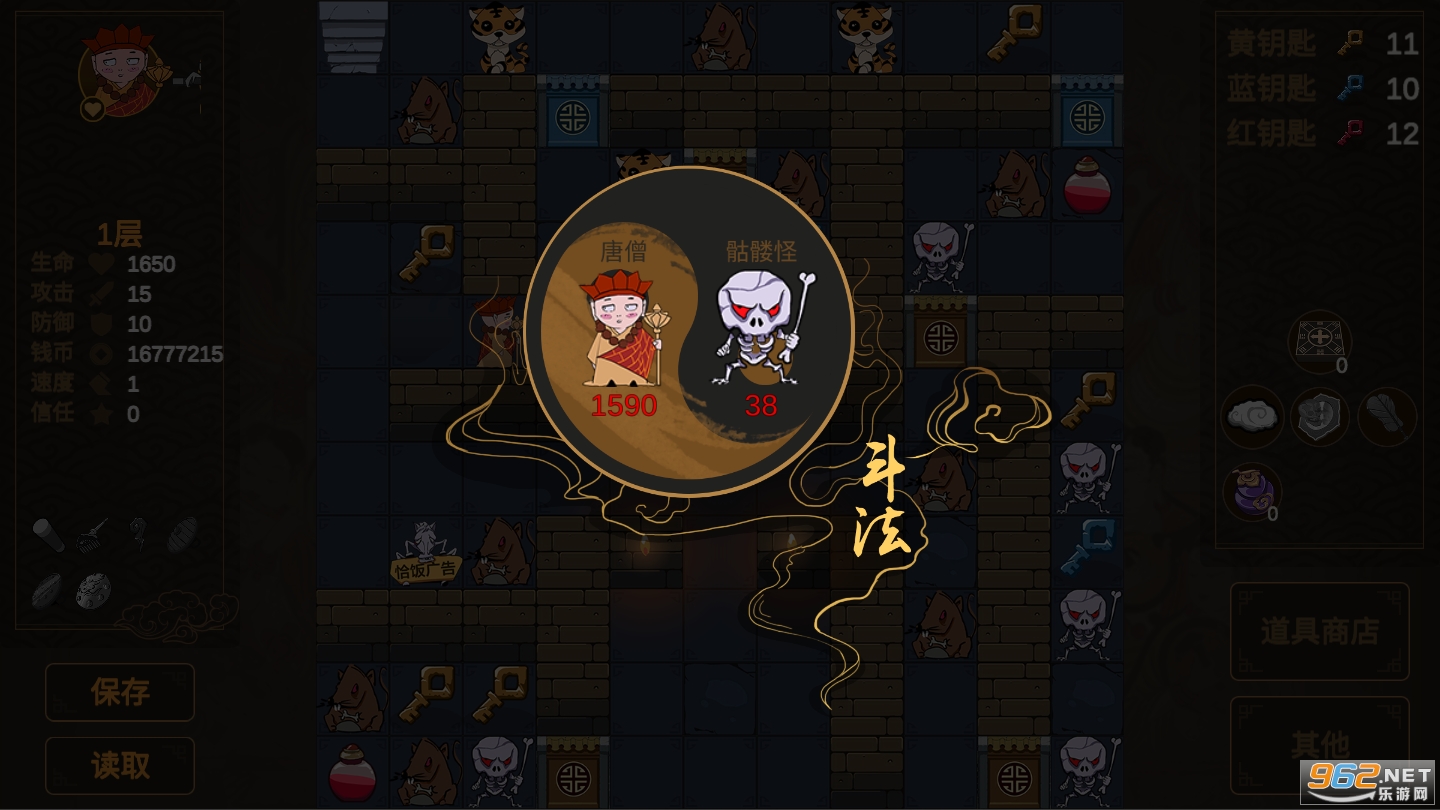 《西游魔塔福利版》是一款非常好玩的魔塔游戏,将传统的西游记加入到了魔塔之中,此版本为福利版,击杀一次怪物后金钱直接拉满,可以购买钥匙去所有的地方哦,游戏玩法非常的简单有趣,喜欢就快来下载吧。