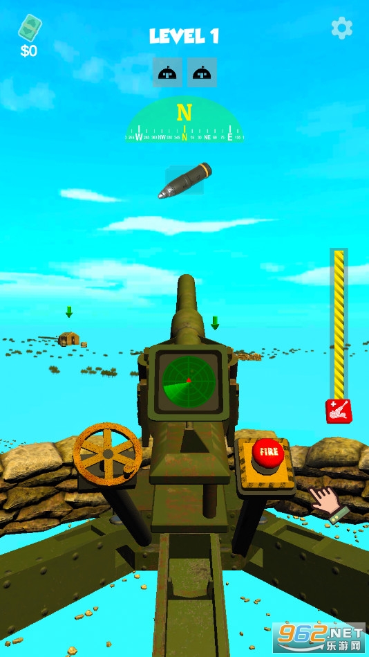 利用迫击炮等各种武器去消灭敌人,点击滑动屏幕可以控制迫击炮的方向,点击右边的按钮来控制高度,当目标进入瞄准框正中心的时候进行攻击,喜欢的朋友可以下载试试。