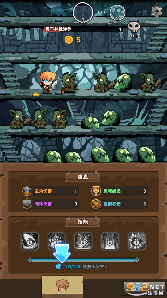 3、即使在你不点击的时候也可以,探索10个以上充满冒险的领域,每个领域中都有多个怪物和老板。