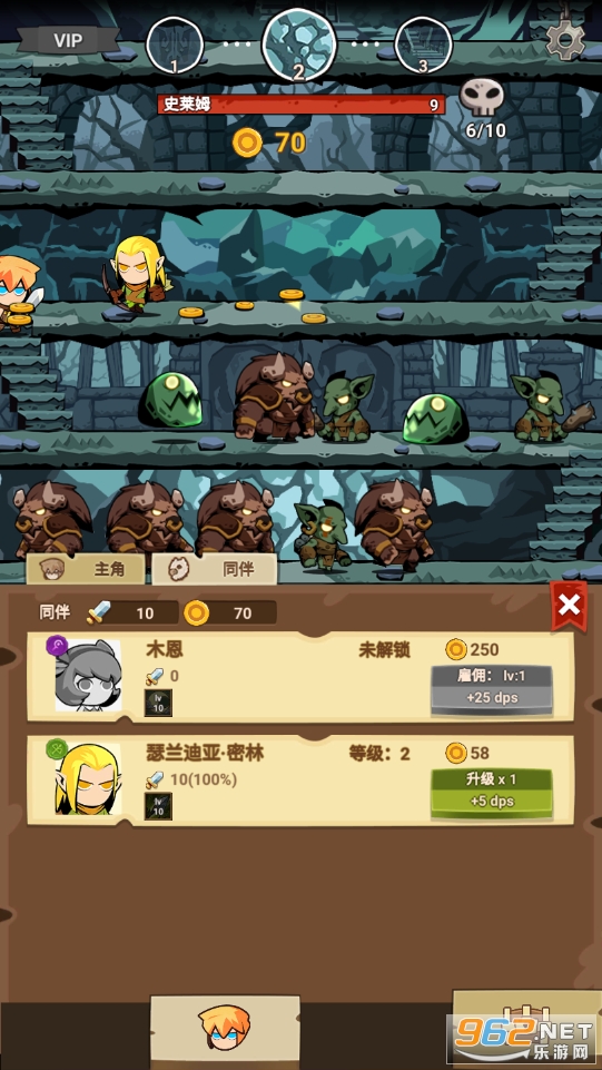 游戏操作十分简单,没有上手难度,升级你的角色技能同伴然后点就完事了