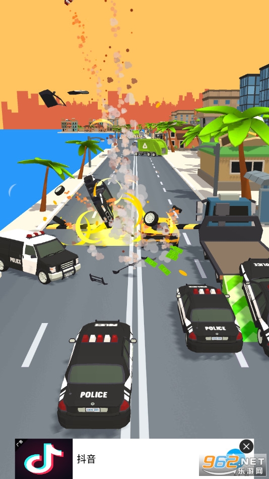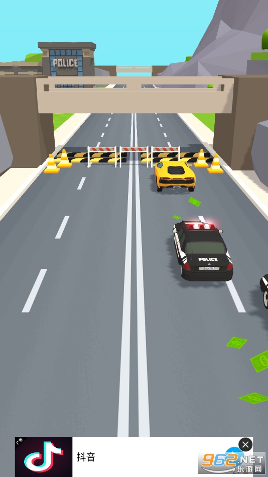 游戏玩起来非常的简单,就算你撞到警车和其他车辆了自己的车也不会损坏,所以你可以横冲直撞,冲向终点,当然一些石柱子等是不能撞的,撞上了汽车就停了被抓住了。