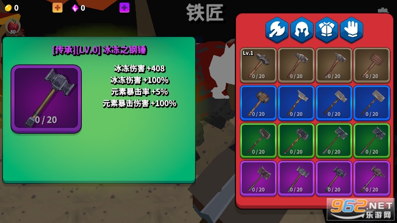 《终极巨人大作战游戏》是一款竞技对战手游,游戏中有着两种角色形象可以选择,玩家可以去铁匠铺制作武器、头盔、衣服等来增强角色的属性,然后前往竞技场去进行战斗,点击滑动屏幕控制角色移动,躲避其他人的攻击,挥舞手中的武器去消灭其他对手。