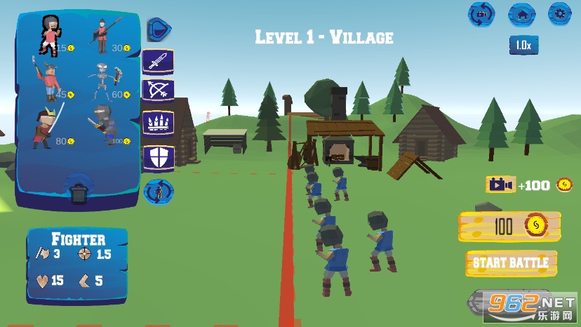 游戏的玩法比较简单,就是给你一定的资金,然后自己去招募各种士兵进行战斗,不过小编测试了一下,体验非常不好,可以叫做广告模拟请了,疯狂弹广告,不建议玩耍。