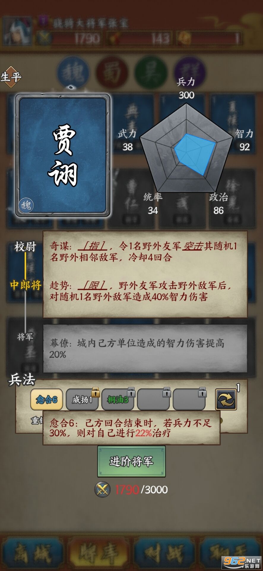 4、将领:通过对战可获得众多三国名将,有名将带队的兵团将具备更强大的战力和更多技能;