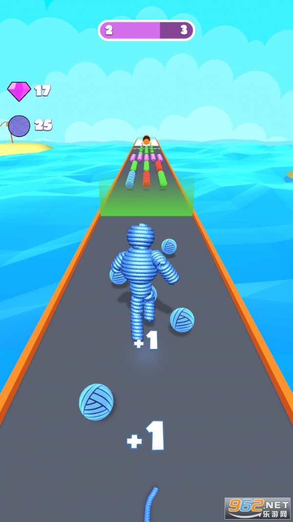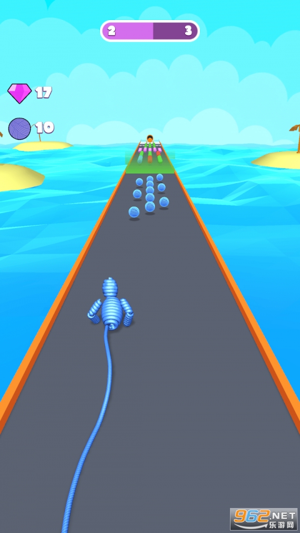 2、玩家将操控一个由毛线组成的绳索人在赛道上进行奔跑,不断前进会消耗绳索;