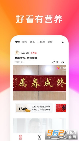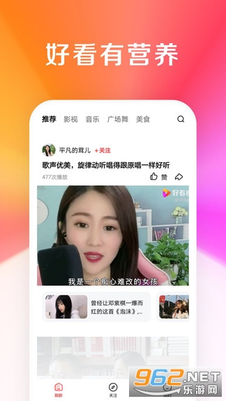 好看视频大字版,是一个为用户提供海量优质短视频内容的专业聚合平台。全方位覆盖美食、兴趣学习、房产家居、旅游、运动健康、穿搭美妆、开箱评测 、汽车等优质短视频,好看到停不下来!通过百度智能推荐算法,为你推荐量身定制的视频内容,并且越用越懂你!轻松有收获,好看有营养! 视觉升级,页面焕新,每个视频都好看!