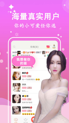 4.自由选择线上高颜值妹子比心陌生聊天体验一周情侣,线上交友聊天,线下见面约会,带你进入恋爱空间。
