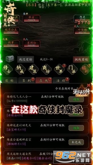 2、升级挂机,什么时候上线均有收益,体验游戏乐趣,而非捆绑你的时间!