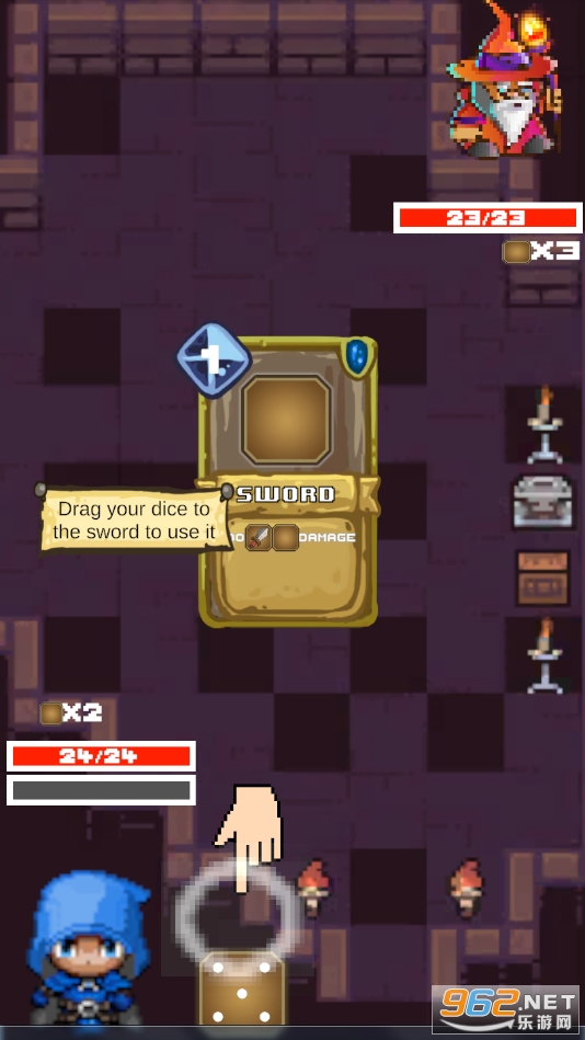 你要消灭地牢最深处的魔王。游戏结合了卡牌和骰子的玩法,玩家通过卡牌来与怪物进行战斗。每一层都会有种不同的冒险,俯瞰式的视角让你能够自由探索,寻找地牢中的宝藏。过连续组合和组合,可以产生不同的爆炸效果。在每个成功的关卡之后,您将有机会打开一个百宝箱