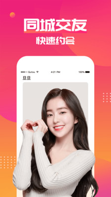 旦旦是一款高端同城交友、交友聊天、单身男女交友、附近交友、同城约会、附近约会、陌生交友、聊天、约会、自由恋爱的社交软件,脱单神器;让你轻松找寻你的心灵伴侣,或许你需要找人陪伴,或许你此刻正承受孤独,或许你需要有人理解,或许你需要找人释放,你有许许多多的需求,你尝试了身边的圈子,也注册了许多的交友APP,但至少此刻,你还没有找到那个人。来旦旦吧,在旦旦优秀的男女可以相互约会、交友、恋爱、旅游......共同经历人生中一段美好的旅程,在这里,颠覆你对传统聊天交友软件的认识,改变您对低效劣质社交的印象,快来旦旦结交优秀的Ta。