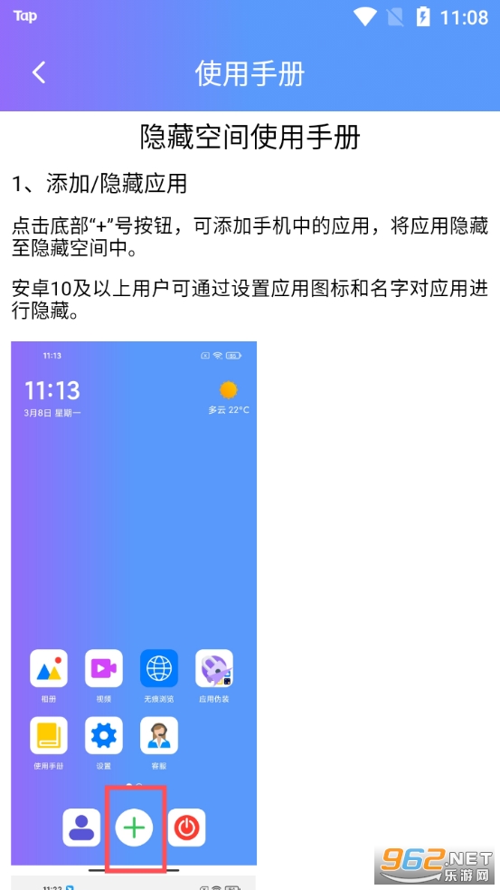 1、葫芦隐藏空间app具有应用隐藏功能,可以将一些社交、视频类应用隐藏起来;