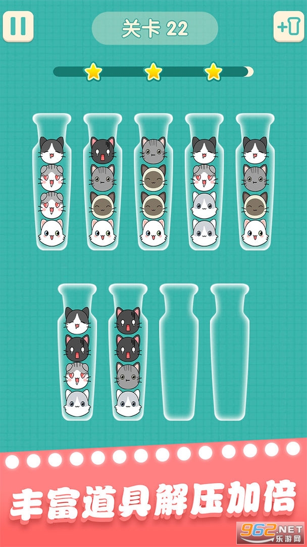 玩家将对球球世界里的彩色球球进行整理,将相同颜色的球整理到同一个瓶子里,使混乱的状态归为有序,呈现出最整洁舒适的状态。