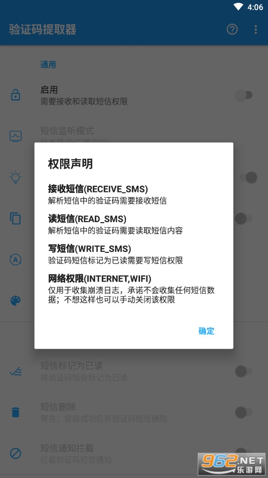 识别并提取新短信中的验证码,并将验证码复制到剪贴板,也能自动输入验证码。大家在使用过程中遇到问题,请先看App中右上角的的“常见问题”。