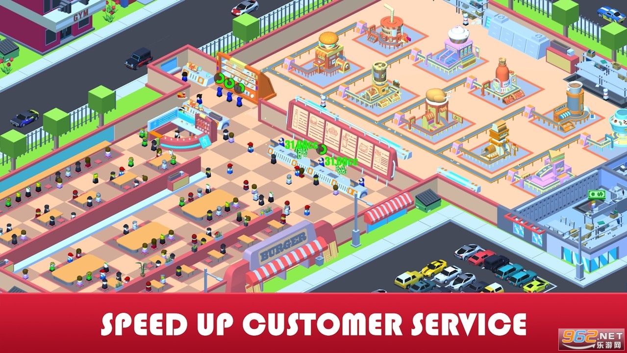 一款不错的放置类模拟经营游戏,玩家将为快餐店的不同方向进行投资,做广告来吸引更多的客人,同时改善快餐店中的环境,扩大的你的面积,雇佣更多的员工,建设属于自己的快餐店帝国,推荐给喜欢休闲游戏的玩家。