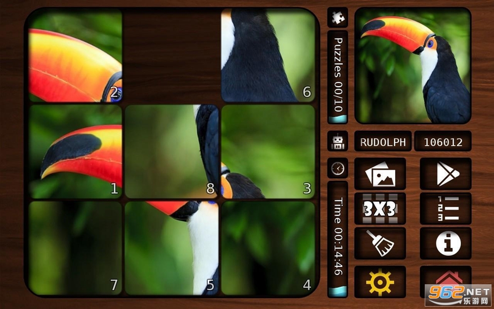 如果你需要一个提示来完成游戏,你可以显示区块编号来帮助你重组棋盘。