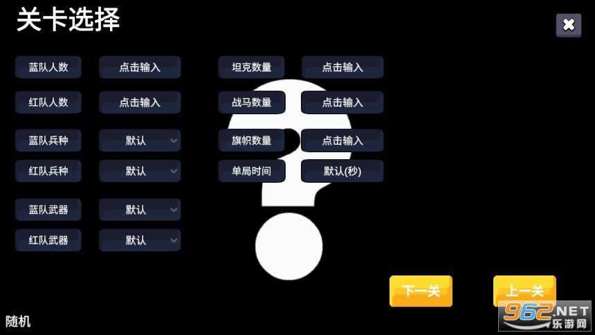 点击关卡自定义,下拉按钮可以设置参数,上一页和下一页可以换地图,设置后之后点击上面的叉叉返回主界面,再点击开始游戏就可以啦。