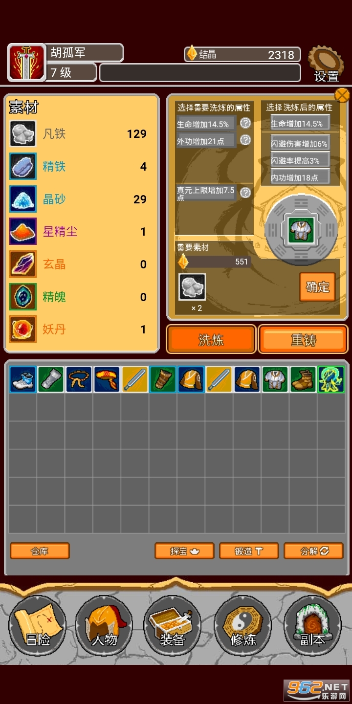 3、完善的装备系统,洗炼属性,重铸装备,不会出现珍贵装备只能丢弃的情况