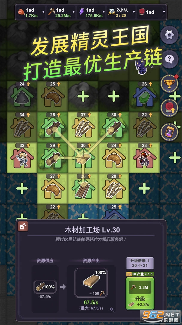 1、初级建筑虽然产量低,但却能为周围的更高级的建筑提供原材料。在有限的领地内,打造出最优的生产供应链,使得王国的资源百倍、万倍地增长。