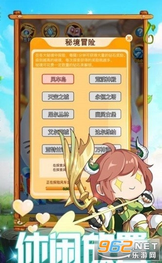 《勇士乐园》是一款卡牌冒险游戏,游戏采用Q版的清新画面,休闲放置,全3D的高清画质,五大职业自由转职,所有的人物角色都有相应的故事背景,让人物更加的立体,来探索神秘世界的乐趣吧。