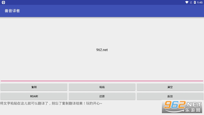 非常好用的一款手机软件,里面有着强大的功能,能够为你的文字信息进行加密处理,让其他人不知道你说的是什么,和朋友花样聊天,还能将朋友发的兽语直接通过软件翻译,知道其中的意思!