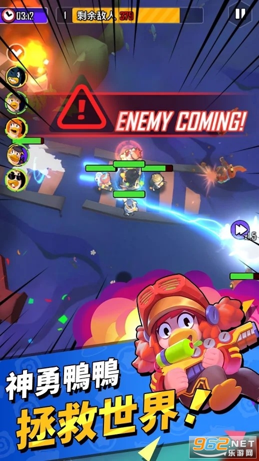 《生存之鸭》(Duck of Survival)是一款卡通风格的动作射击游戏,游戏中你将控制各种各样的鸭子来拯救世界,游戏的操作简单容易上手,你需要控制你的小队进行移动,灵活的搭配阵容通过关卡,游戏的玩法轻松有趣,赶快下载体验吧!