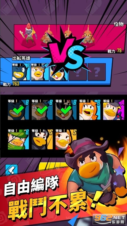 不同的攻击方式与技能效果,自由搭配组成小队,在不同游戏模式中探寻更强阵容