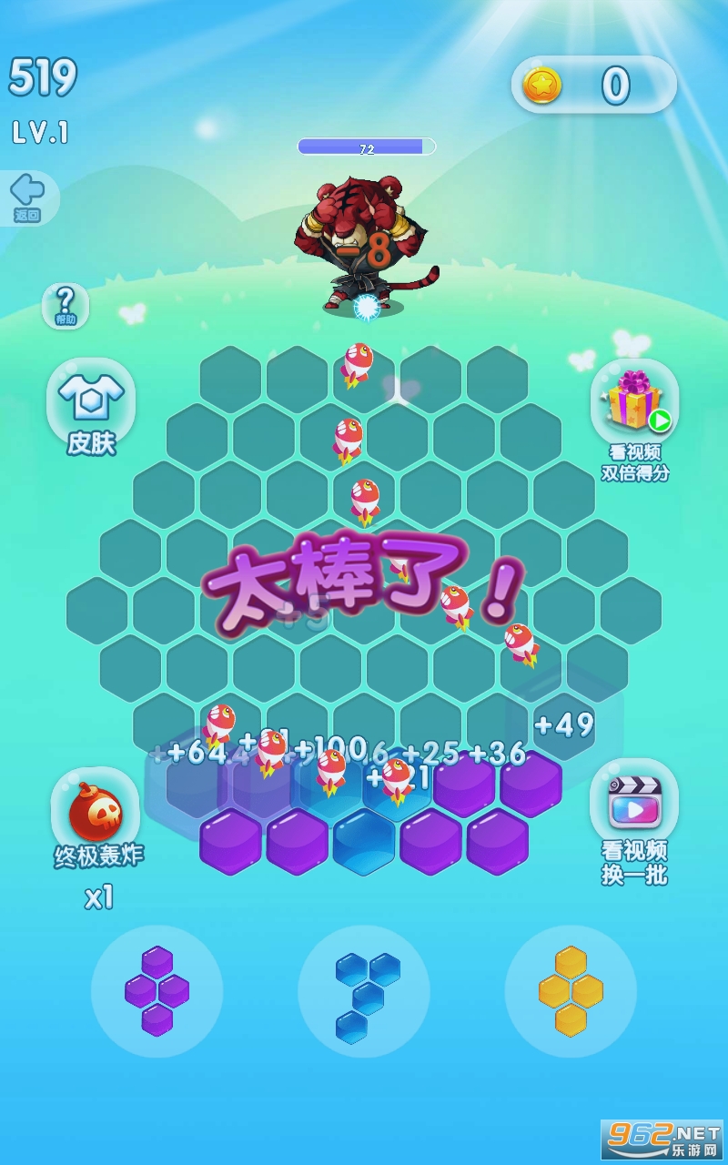 拼接多边形是一款创意类的消除产品,玩家在消除的同时能不断打击小怪兽,拼接消除的同时还能不断的积累能量和力量去打怪升级,欢迎大家下载。