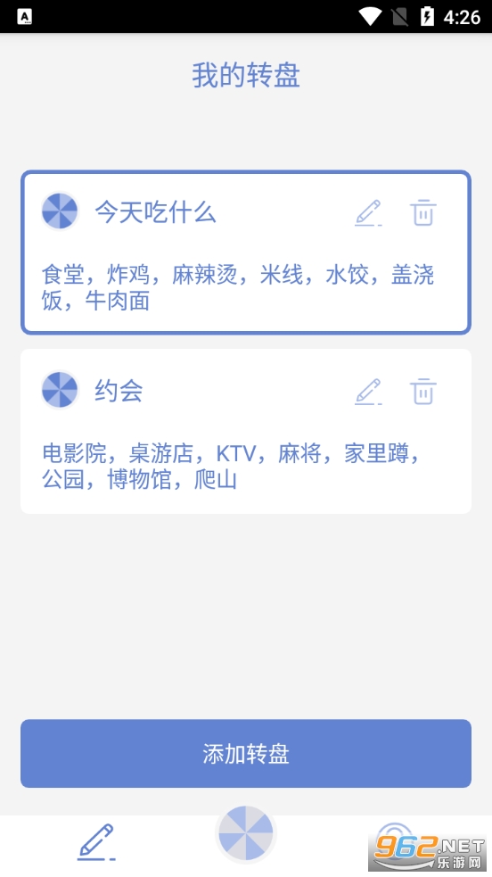 再也不用担心选择困难症的问题了,遇事不决转一转,可以自己根据实际情况添加转盘,实用性强,让你再也不用因为这些小事纠结了,快来下载吧!