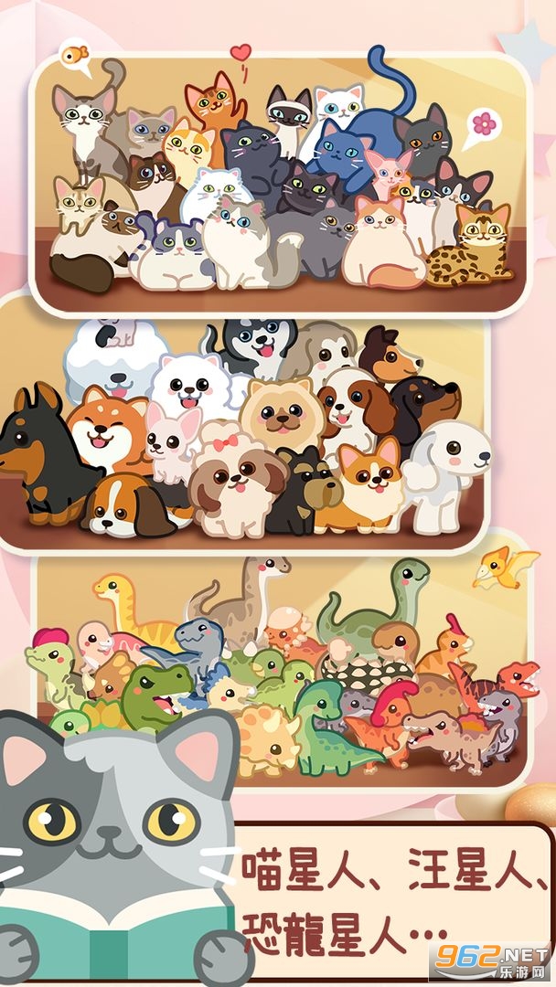 2、多样主题:猫咪、狗狗、恐龙、怪兽、主题不断更新,探索神奇的动物的世界!