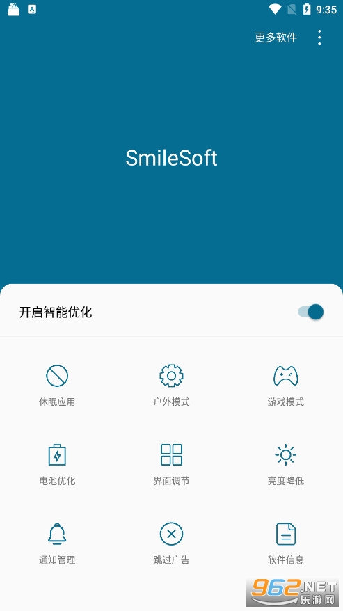 《SmileSoft最新版》是一款有着不错功能的智能优化软件,通过这款软件你可以对你的手机进行智能优化,让你用起来更加的便捷舒适,通过这款软件可以跳过各种各样的广告,管理手机通知栏和导航栏,赶快下载体验吧!